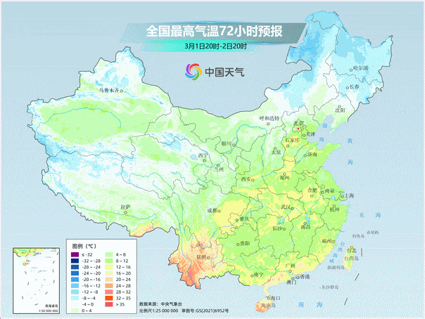 好在本周末,大部地区气温将明显上升,回归到常年同期正常水平,最高气温10℃线快速推进到华北中部。南方的升温会持续到下周初,3月4日南方多地最高气温将重返20℃+,再次感受春意。