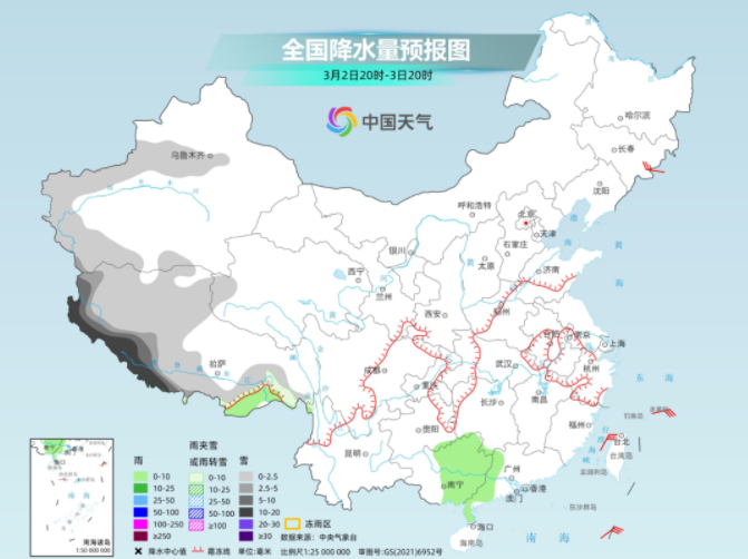 在冷暖空气交汇下,雨雪也将发展增多,今明天西南地区东部、江淮、江南、华南等地有小到中雨,广西东北部、湖南中南部、江西中部、福建西北部等地部分地区有大雨,并伴有雷暴。降雪主要集中在内蒙古东部、华北西部、东北地区北部和东部、西藏东部、青海南部和东部、西北地区中东部、川西高原等地。