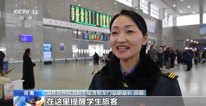 国铁郑州局洛阳车站洛阳龙门站副站长 邵丽:在这里提醒学生旅客,有些火车站设有高校学生旅客接车点。学生旅客可以提前联系学校,询问相关情况和接车点位置,方便出站后及时乘坐学校专车返校。