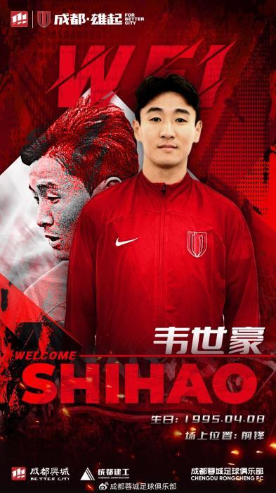 韦世豪加盟成都蓉城。图片来源:成都蓉城足球俱乐部