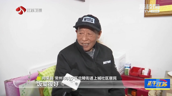 常州市天宁区兰陵街道上城社区居民周荣昌告诉我们,饭菜很好,自己原来每餐订的是15元,补贴4元。