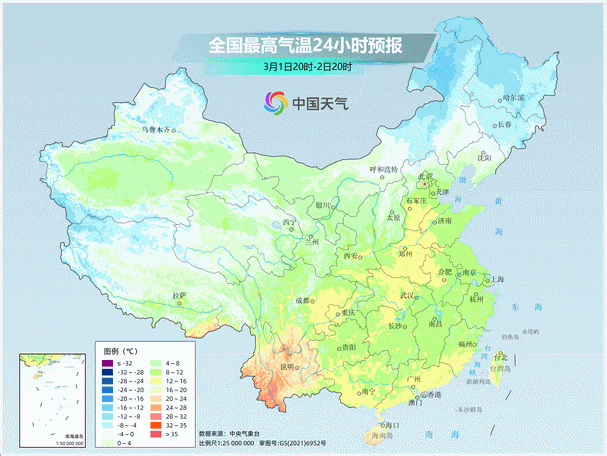 在阳光加持下,南北方气温都将明显回升,周末最高气温10℃线会快速推进到华北中部。尤其是南方,升温还要持续到下周初,4—5日气温将会达到近期高点,暖意回归,江南最高气温将重新回到20℃以上,华南则会达到25℃以上甚至冲击30℃。