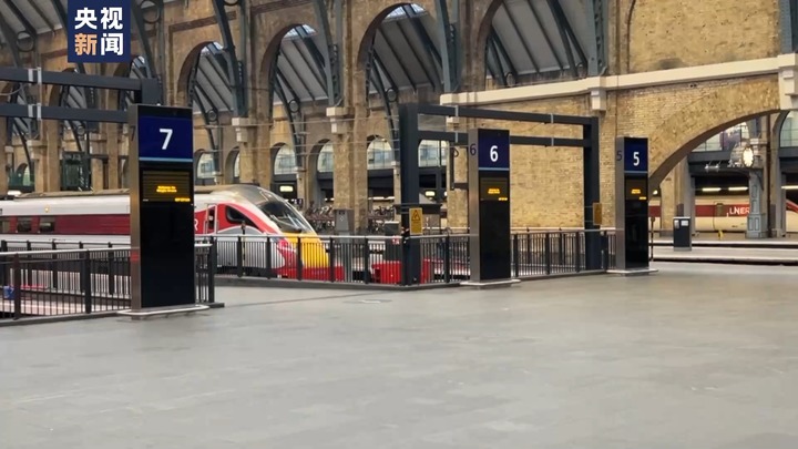 受罢工影响,3月1日早间,英国最重要交通枢纽之一、位于伦敦市中心的国王十字车站内,2家火车公司的列车静静停在铁轨上,无法运营。而在车站外,一些参与罢工的火车司机在此聚集,表达不满。