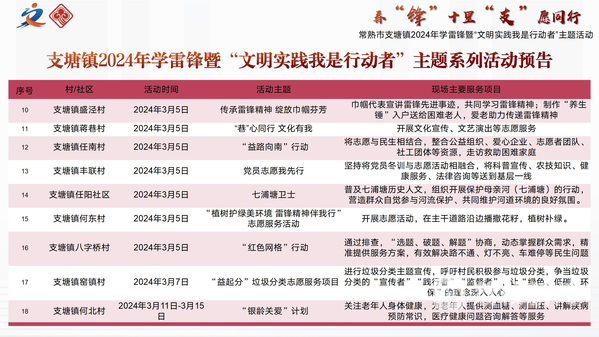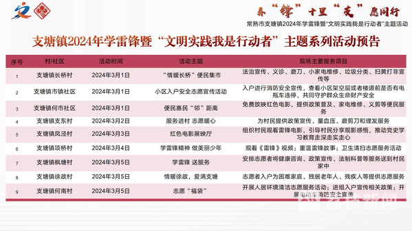 发布支塘镇2024年学雷锋志愿服务月服务清单
