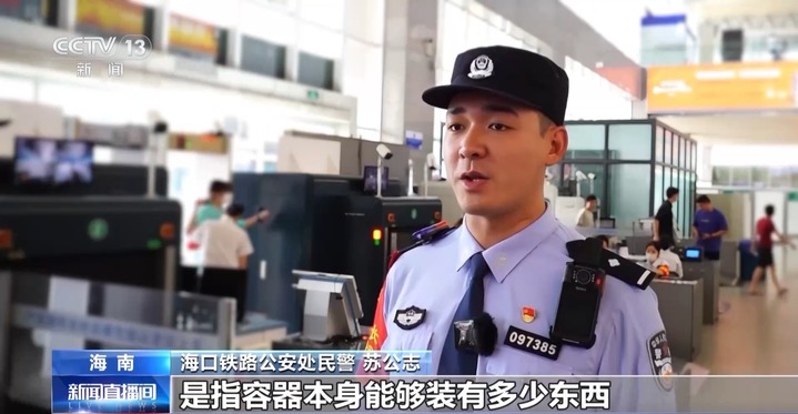 海口铁路公安处民警 苏公志:这里的单体容器容积,是指容器本身能够装有多少东西,不是说容器本来里面还剩有多少东西。举个例子,一瓶喷雾大概还有80毫升,而其单体容器容积是350毫升,远大于100毫升的限制标准,所以这是不允许携带的。