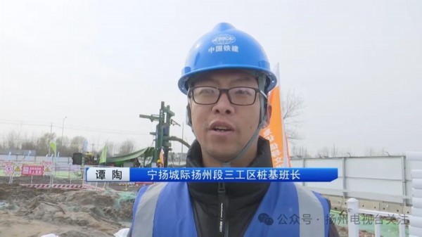 宁扬城际三工区桩基班长 谭陶:24小时连轴转,尽量在4月中旬完成朴席车站的192根桩基。