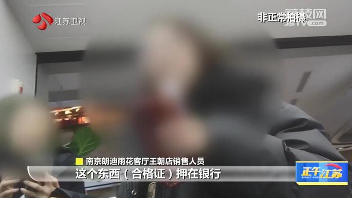 南京朗迪雨花客厅王朝店销售人员:“合格证抵押在银行。贷款的钱公司没有给到银行,所以说这个证拿不出来。”