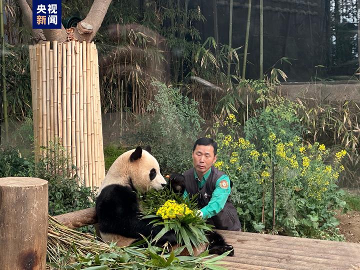 当天,“福宝”的饲养员姜哲远、宋永宽为“福宝”准备了爱心窝头和竹子制作的“宝家族”全家福,还有寄托着两位饲养员美好祝福的油菜花束,让“福宝”最后一个与韩国观众见面的日子充满了爱与祝福。