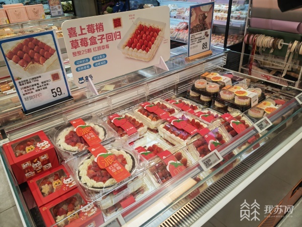 除了南京人偏爱的野菜外,一些春天的时令水果也进入销售旺季。超市负责人表示,随着天气转暖,草莓、李子、芒果等水果进入热卖期,门店内的一款草莓蛋糕甚至多次卖到脱销。“对比以往的销售已经翻了5倍,从一天的几百盒到现在的几千盒,这个数据在增长,供应链也是加班加点生产,草莓需求量比以前也增长了好多倍。”盒马烘焙蛋糕采购负责人曹文学说。