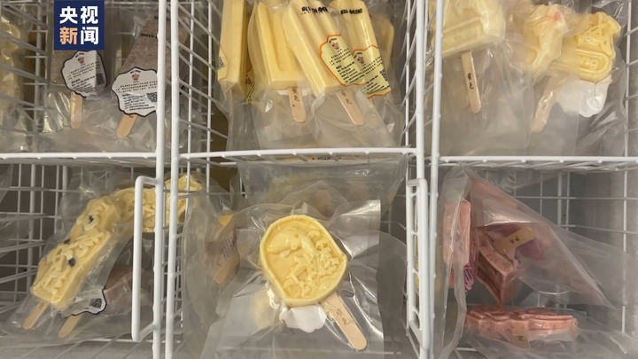 店里的大冰柜放满了手工文创雪糕,店主正在熬制冬季限定的烤梨热饮,有些顾客选择坐下来慢慢品尝,有些顾客则自取雪糕,付款离开。甚至有人在这家店预存了100根雪糕,随吃随拿。