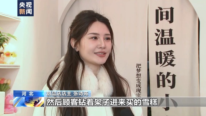 总台央视记者 杨理天:河北怀来县沙城镇的商业街上,除了常见的连锁品牌,还有很多网红小店,这家店的特色是冷饮和甜品,很受年轻人喜欢。