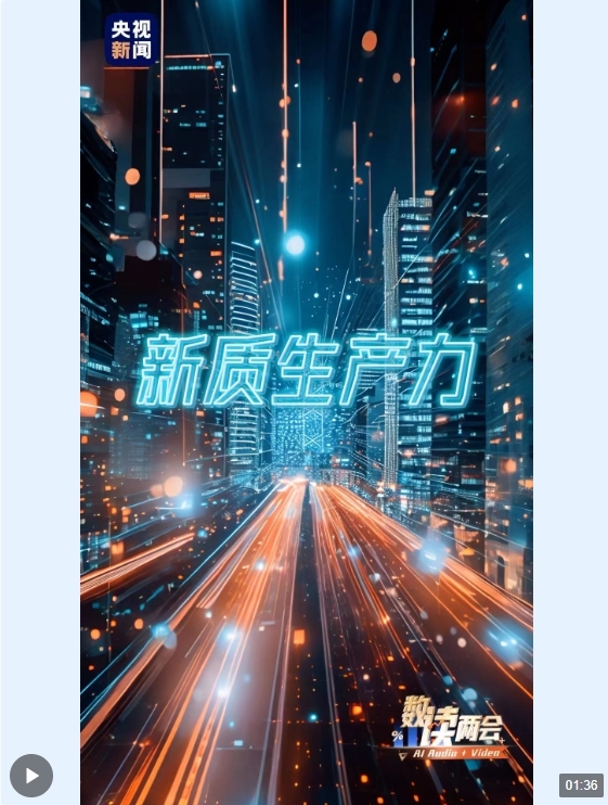 面向未来,“新”风扑面。央视新闻AI系列竖屏短视频《AI数“读”两会》带你通过视频腾飞想象,以AI技术的极致未来感,感受新质生产力的澎湃动能!