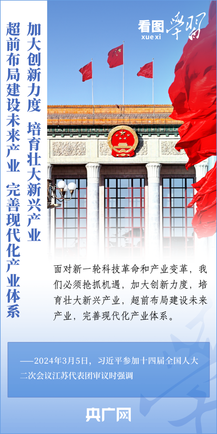 3月5日,十四届全国人大二次会议正式开幕。5日下午,习近平总书记参加他所在的江苏代表团审议时强调,要牢牢把握高质量发展这个首要任务,因地制宜发展新质生产力。发展新质生产力不是忽视、放弃传统产业,要防止一哄而上、泡沫化,也不要搞一种模式。一起来学习!