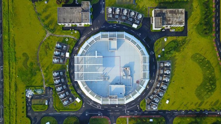 这是在广东省东莞市大朗镇拍摄的中国散裂中子源(2019年7月24日摄,无人机照片)。新华社记者 刘大伟 摄