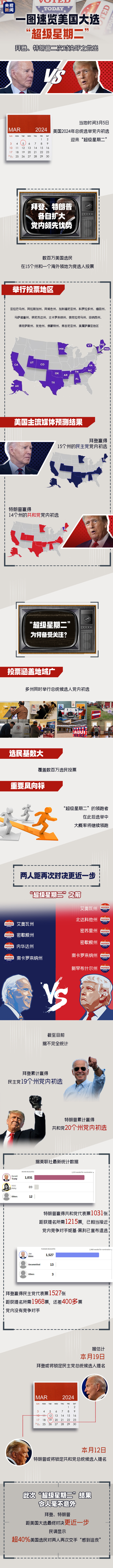 “超级星期二”为何引人关注?这一天将如何影响11月举行的美国大选?拜登、特朗普各自选情出现了哪些变化?一图详解↓