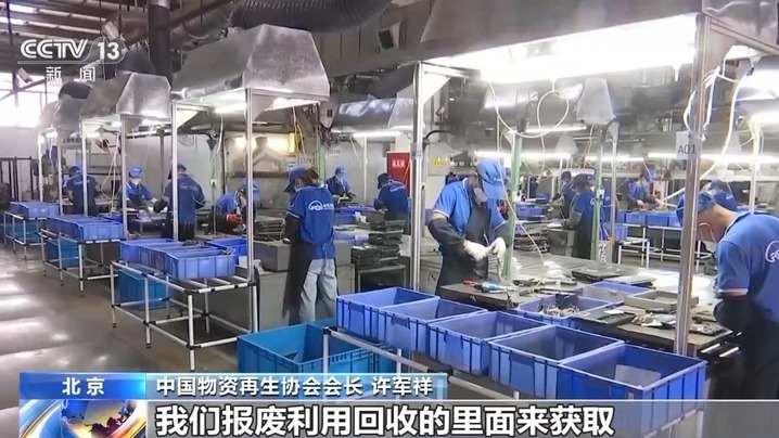 中国物资再生协会会长 许军祥:通过以旧换新,可以使我们替旧更新的量应该有很大的提高,我们家电废旧的有一定的量,我们汽车回收有一定的量,这个量上来了,有利于我们建立回收的体系,包括一些溯源的体系,量集中以后,会使回收以后的材料能够得到更好利用。