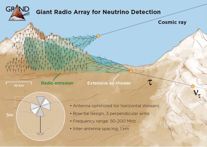为探测这些无线电波,科学家设计了一些探测器,例如大型中微子探测阵列(GRAND)实验,它将使用总共20万根天线,在世界各地分布成20个独立阵列。