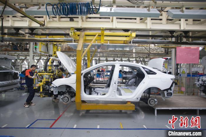 资料图:某工厂的汽车生产流水线。 张云 摄