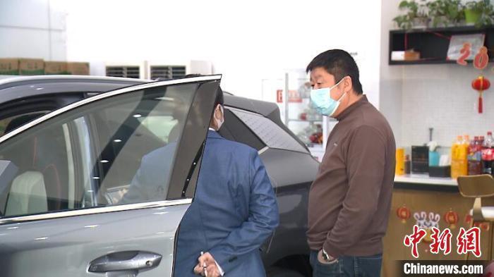 资料图:上海市民向销售人员了解纯电汽车的补贴政策。 张践 摄