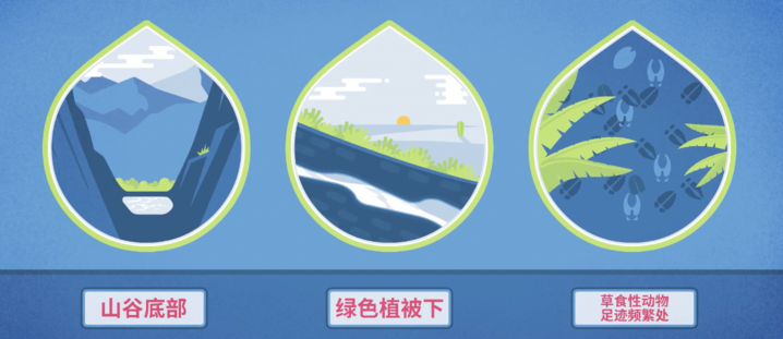 如果缺乏饮用水,可在山谷底部、绿色植被下以及草食性动物足迹频繁处寻找。