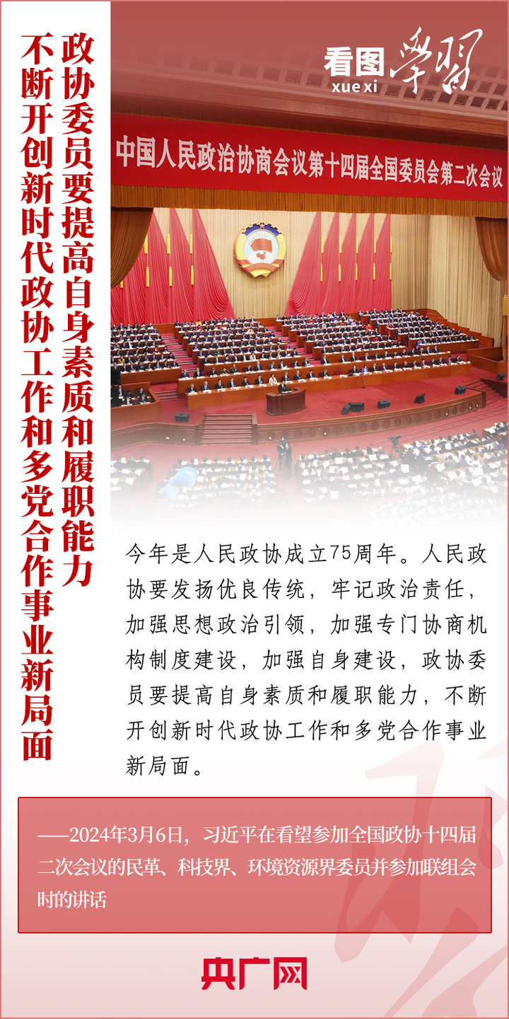 今年是人民政协成立75周年。3月6日下午,习近平总书记在看望参加全国政协十四届二次会议的民革、科技界、环境资源界委员并参加联组会时强调,人民政协各党派、各团体、各族各界各方面人士要围绕中共二十大提出的重大战略任务和中央经济工作会议部署,深入调查研究,积极建言资政,广泛凝聚共识,助力中国式现代化建设。一起来学习!