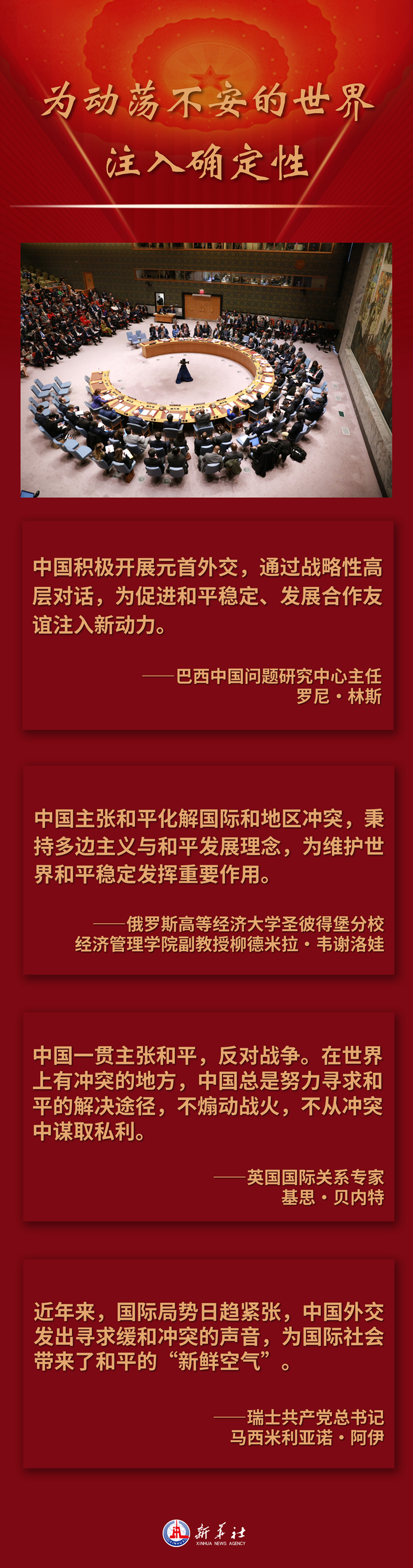 多国人士指出,在世界格局深刻变革、人类社会遭遇多重挑战的当下,中国智慧、中国方案持续为应对全球性挑战提供新路径,中国作为和平力量、稳定力量、进步力量,展现了推动构建人类命运共同体的责任担当,正同各国携手共进,推动世界走向更加美好和光明的未来。