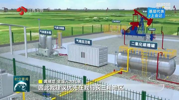 江苏台记者郑伟:来北京前,全国人大代表龚绪龙带着记者走访了不少地方。作为一名地质专家,2023年,他和团队在泰州打造了国内首个“咸水层+油层”二氧化碳地质封存示范工程。在这里,二氧化碳不会被排放到大气中,而是被埋进2500米深的地下,不仅能实现减排,还能为石油的开采加把劲。虽然“上天”改“入地”、废气变宝藏非常神奇,但记者也了解到,新技术的推广复制还存在瓶颈。