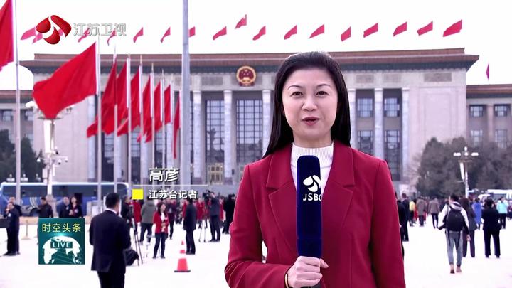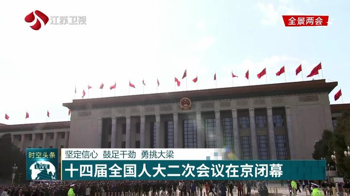 江苏台记者高彦:“高举旗帜,团结奋进、凝心聚力。今天下午,十四届全国人大二次会议在北京人民大会堂胜利闭幕。”