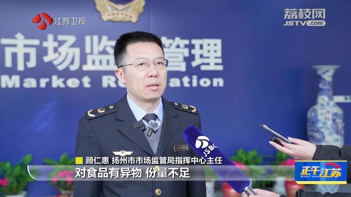 扬州市市场监管局指挥中心主任顾仁惠通报,全年食品类的投诉举报有8000多件,主要问题就是消费者感官上,对食品有异物、份量不足,以及网络订餐退订。这一块的消费投诉还是比较多的。