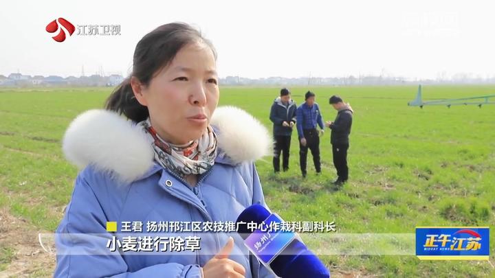 扬州市邗江区农业局农技推广中心作栽科副科长王君说,小麦除草,这几天正好晴好比较多,是关键的窗口期。第二点是因苗施肥,要对弱小的苗施肥,对于生长比较旺盛的,尽量把施肥时间往后拉一点,3月中下旬再进行施肥。