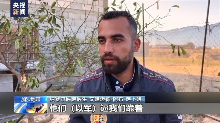 纳赛尔医院医生 艾哈迈德·阿布·萨卜哈:他们(以军)逼我们跪着,我们眼睛被蒙住,地上挖了一个大坑,我们以为他们要处决我们,把我们埋在坑里。