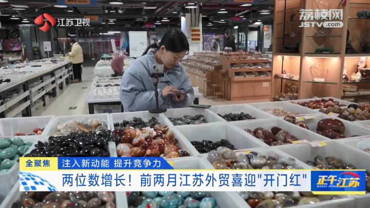 加快通关效率、降低物流成本,这对外贸企业来说是最直观的红利。今年以来,江苏抓紧出台新政策,从疏通淤塞环节、扩大“朋友圈”等方面,助力广大外贸主体在创新求变中,抓住市场新机遇。前两个月,江苏民营企业进出口增长势头强劲,进出口3968.5亿元,增长28.1%,占全省外贸比重较去年同期提升5.4个百分点,达到46.7%,拉动全省进出口增长11.6个百分点。同时,今年江苏还将做大跨境电商等出口新业态,作为外贸创新发展的重点举措,为“稳外贸”增添了新动能。在连云港东海县,当地围绕水晶特色产业带,采用“水晶超市+跨境直播+孵化培训”模式,建设开放式跨境直播间,提供直播电商培训、“门到门”物流等服务,已累计培训孵化跨境主播1500余人。以前一些“不敢不懂不会”做外贸生意的企业,现如今已经拥有了大批固定海外顾客。