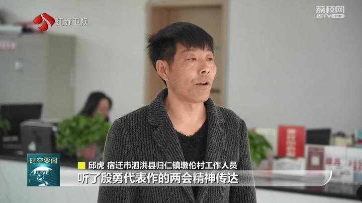 宿迁市泗洪县归仁镇墩伦村工作人员邱虎说:“听了殷勇代表作的两会精神传达,我深切地感受到党和政府对人民群众的关心、关切。作为一名基层的工作人员,我将实干当担,和群众一起创造更加幸福美好的生活。”