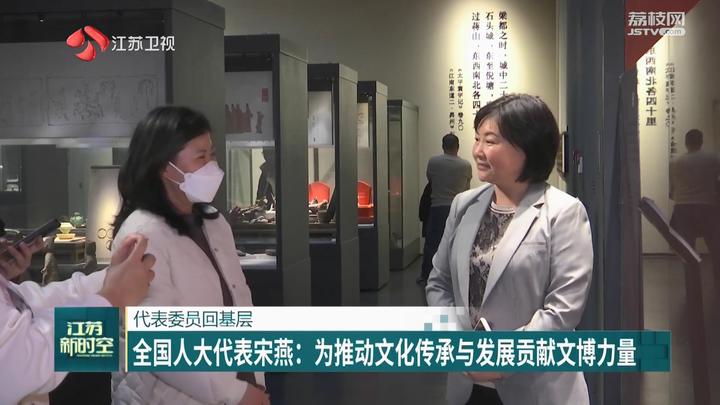 全国人大代表、江苏台主持人张晓北:“全国人大代表宋燕在今年两会上讲述的关于这扇‘最美落地窗’的故事,引发了大家的强烈共鸣。透过这扇窗,我们看到了文博人对保护好、传承好、利用好历史文化遗产的思考与探索,同时也感受到了‘博物馆热’背后的巨大潜力。从北京回来后,宋燕代表把两会精神带到了基层。”