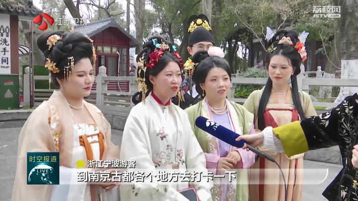 浙江宁波游客说:“像我这样是唐朝的服饰,这个是宋朝的服饰,明朝的服饰,这也是唐朝的服饰。我们特别喜欢汉服文化,我们穿着汉服到古都南京各个地方去打卡。”