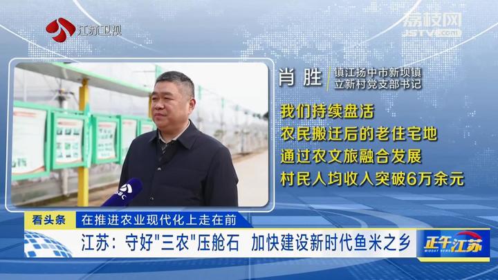 镇江扬中市新坝镇立新村党支部书记肖胜说,持续盘活农民搬迁后的老宅基地,通过农文旅融合发展,村民人均收入突破6万元。