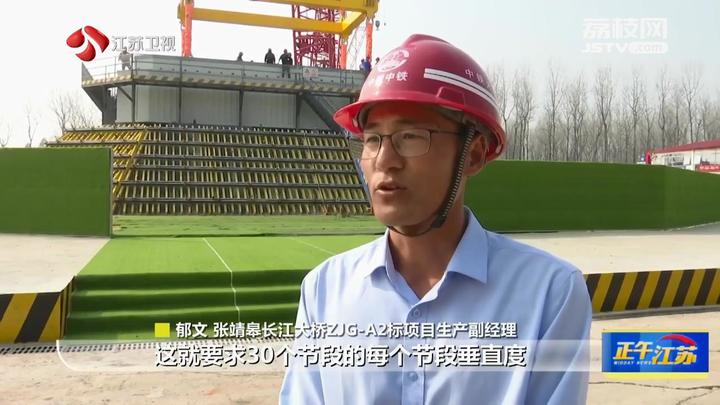 张靖皋长江大桥ZJG-A2标项目生产副经理郁文说:“350米的主塔垂直度允许偏差为58毫米以内,只有一个拳头的距离,这就要求30个节段的每个节段垂直度偏差需控制在毫米级以内,相当于4层楼的高度允许偏差值只有米粒大小。”