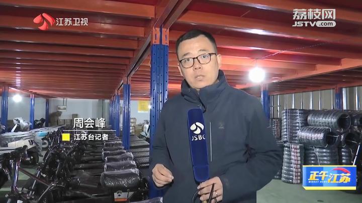 江苏台记者周会峰:“在现场的执法检查过程中,我们还发现这里有几十辆这种大的电动车,非常大,从外观上看没有任何的品牌和执行标准。”