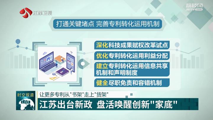 作为科教大省,2023年江苏万人发明专利拥有量达62.1件,连续8年保持全国省区第一。但作为专利“大户”,高校和科研院所专利转化率偏低,存在不少“沉睡”的专利。对此,《江苏省专利转化运用专项行动实施方案》提出,要把“盘活高校和科研机构存量专利”作为重要任务加以推进,通过对存量有效专利进行全面盘点评价,筛选具有潜在市场价值的专利登记入库,同时运用大数据、人工智能等新技术匹配至相关中小企业,力争今年年底前实现全省高校和科研机构存量专利评价、筛选、登记、匹配全覆盖。