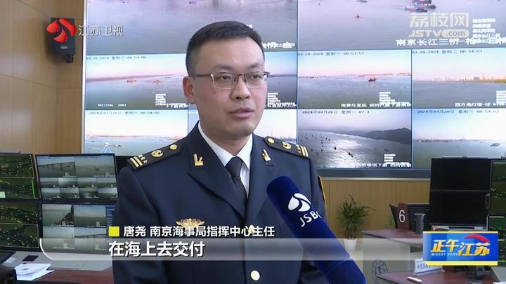 南京海事局指挥中心主任唐尧说:“这艘船是一艘新造的集装箱海轮,船长167米,是1667标箱这个级别的一个海轮。在海上去交付,所以要航经我们南京长江大桥。”