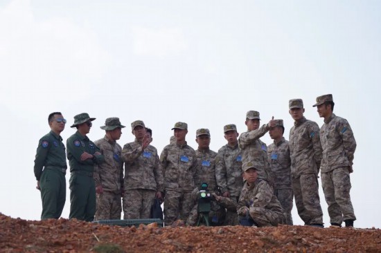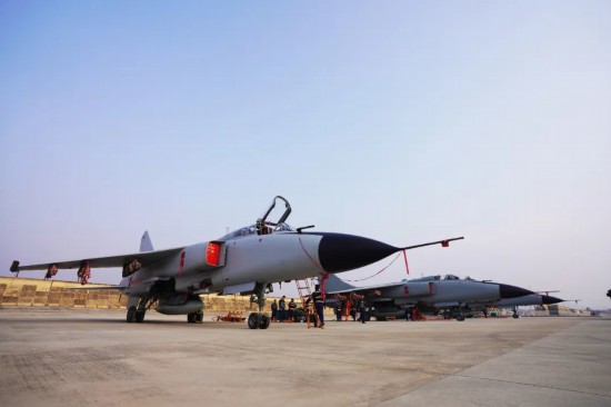 “请求空中火力支援!”三军特战分队向“敌”制高点突袭,但遭火力阻拦,兵力行动迟滞,迅即上报支援申请。数百公里外某机场航空兵旅接令后,根据作战指令,迅速开展任务规划。随后战机依次滑出,接续升空。