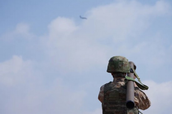 “空中敌袭、目标已锁定,请示发射!”蓝军防空导弹处,两名手持便携式防空导弹的“敌军”,对红军空中支援虎视眈眈,紧咬不放。红军特战队员迅速通报“敌情”,战机立即释放干扰弹机动摆脱,撤离作战区域。最终,这场实兵对抗训练以红军险胜一招落幕。