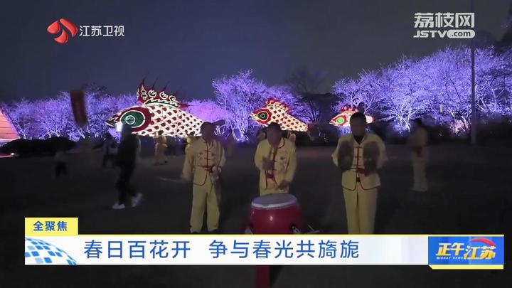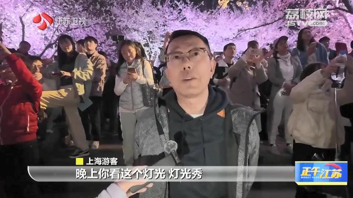穿梭光影之间,花簇如白雪,清辉散作星。游人们驻足停留,在灯火阑珊处细嗅樱花,将整个春天收入囊中。工作人员介绍,今年鼋头渚夜樱现场还增加了非遗百戏艺术秀,鱼灯舞、英歌舞轮番上演,将中国传统文化瑰宝以更年轻的形式展现在大家面前。最近几天,景区的染井吉野樱也会和晚樱次第开放。