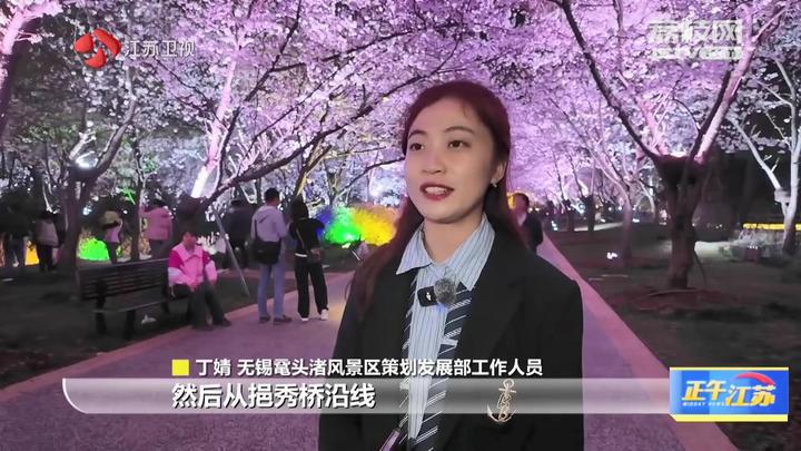 无锡鼋头渚风景区策划发展部工作人员丁婧说:“今年我们也是增加了一个游览沿线,从充山隐秀区域一直到挹秀桥,然后从挹秀桥沿线一直到我们现在所在的樱花谷区域,都增加了一个亮化。”