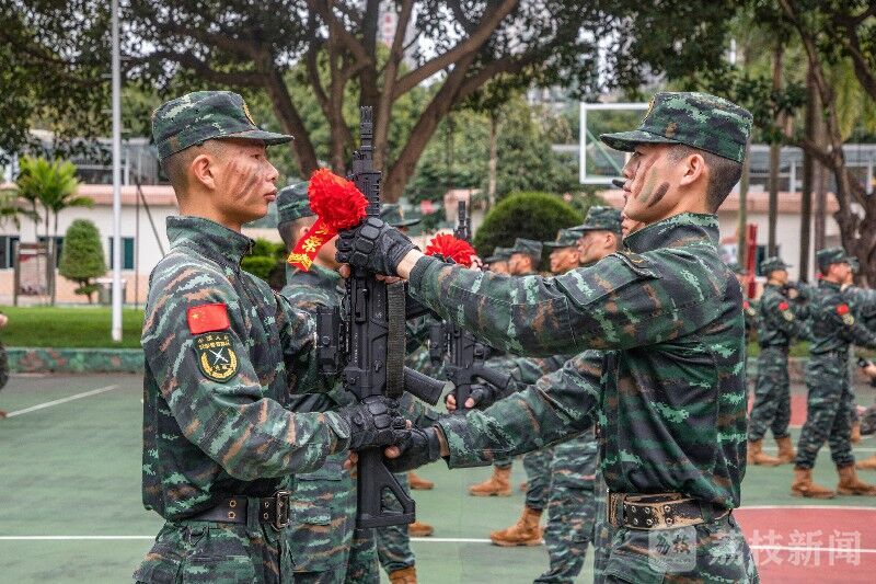 近日,武警广西总队机动支队举行2024年度特战队员入队仪式,新晋特战队员们整齐列队在军旗和特战队旗下庄严宣誓,接过老队员手中的钢枪,成为正式的特战队员,也被赋予了“特战人”的使命与担当。他们将担负起反恐处突、维护社会稳定、保障人民安居乐业的神圣使命。