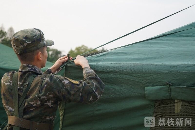 部队到达指定地点后,官兵们采取划区分片、定人定责、相互协同的方式,第一时间对指挥所、宿营区、就餐区、野战停车场进行开设。