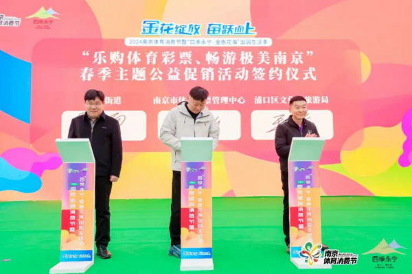 新业态焕发乡村消费新活力,本次活动围绕“体育+乡村”的融合应用场景,推出“彩票换门票”行动,由浦口区文旅局、永宁街道与南京市体彩中心三方签署“乐购体育彩票、畅游极美南京”——百万彩民进景区体旅公益活动。