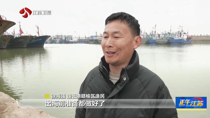 连云港赣榆区渔民徐海强说:“出海前准备都做好了,天气也挺好的。油、冰、水都上好了,准备到吕四渔场。”
