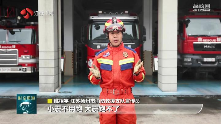 江苏扬州市消防救援支队宣传员姚相宇说:“小震不用跑,大震跑不了。不知道你有没有听说过这句话。地震突然来袭,我们该怎么办?躲在哪里才算安全呢?如果你在室内,请记住以下口诀:震时就近躲,震后迅速撤。”