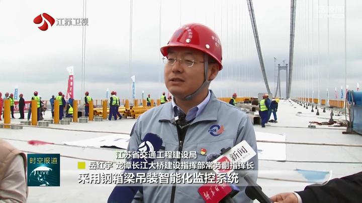 江苏省交通工程建设局龙潭长江大桥建设指挥部常务副指挥长岳红宇说:“在吊装过程中采用钢箱梁吊装智能化监控系统,进一步加强吊装过程中的安全监控、预测预警,全方位守护吊装作业安全,确保整个吊装过程安全、有序、可控。”
